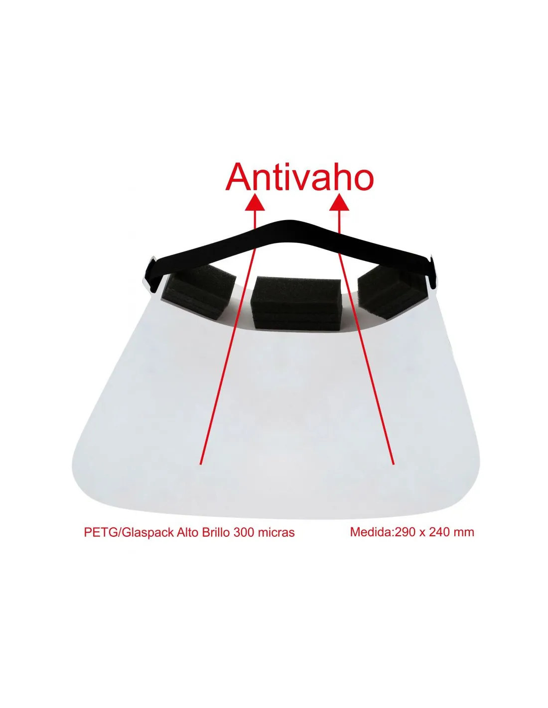 Visera facial de PETG/Glaspack alto brillo 300 micras.