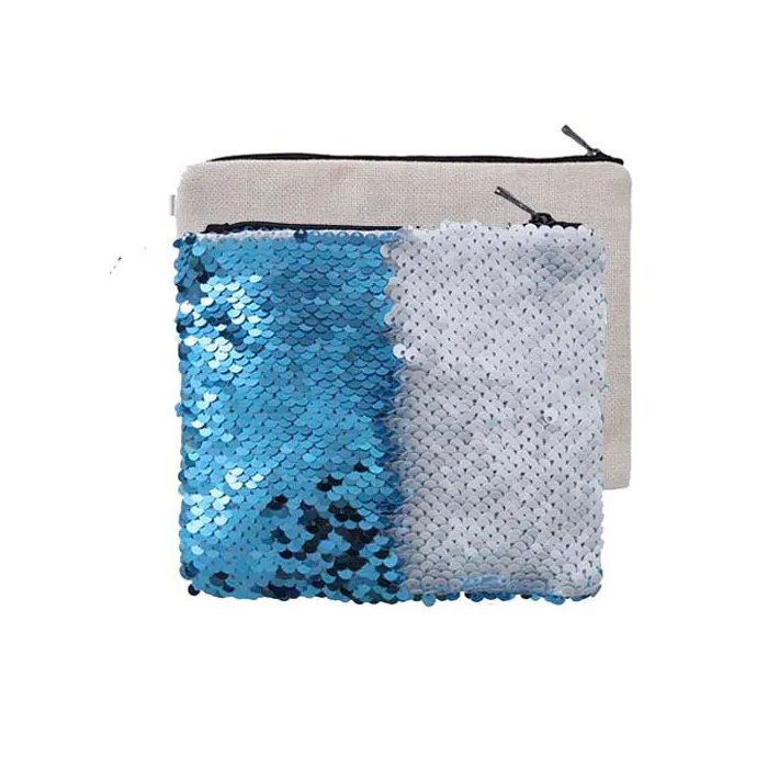 Monedero de lentejuelas reversibles personalizable mediante la técnica de la sublimación.