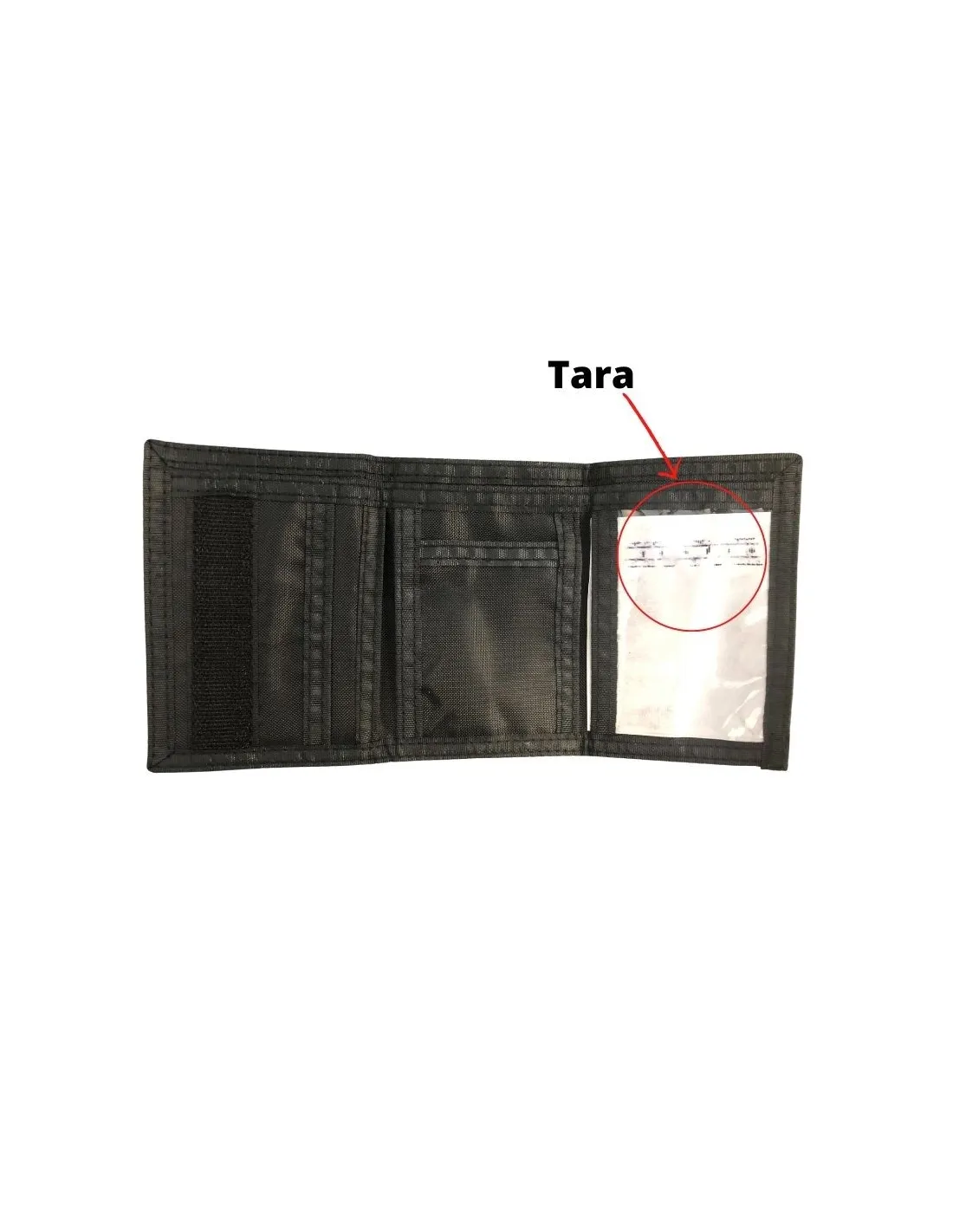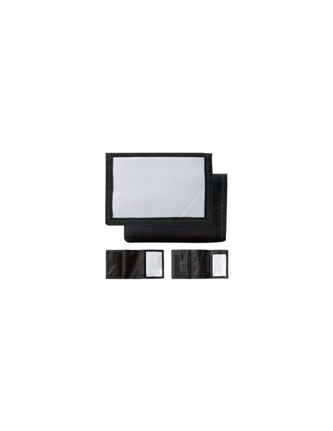 Monedero de loneta negra personalizable mediante la técnica de sublimación.