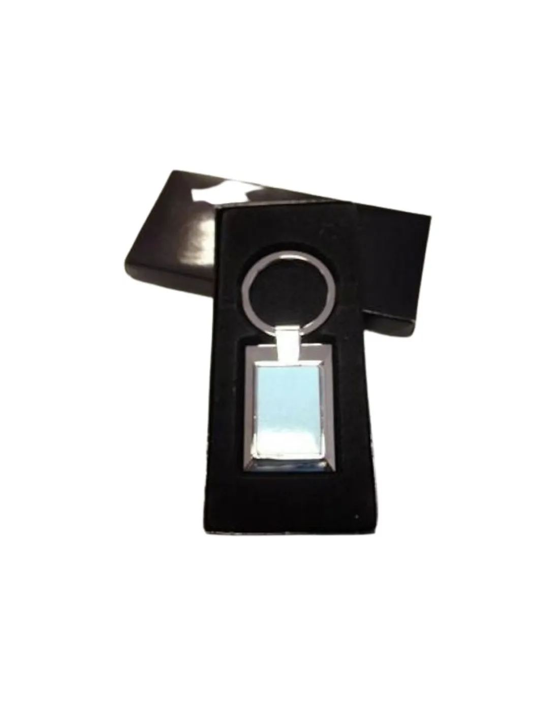 Llavero metálico rectangular personalizable para sublimación.