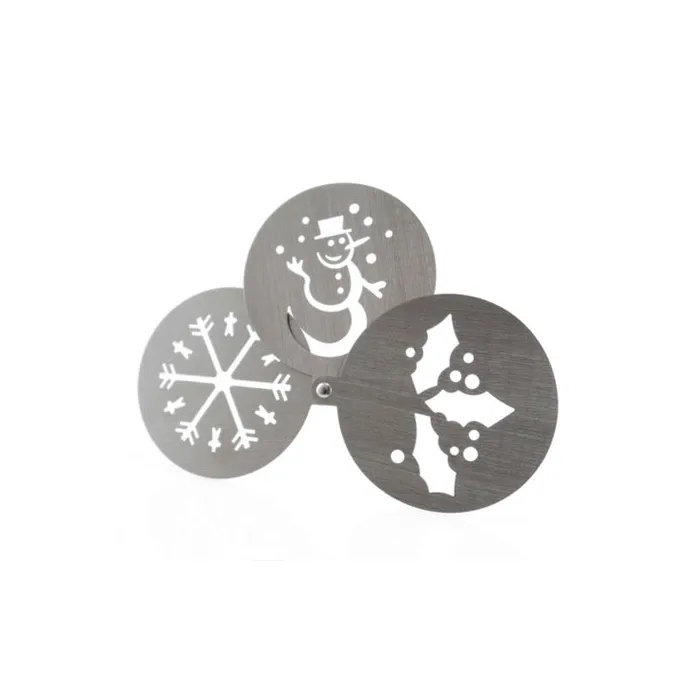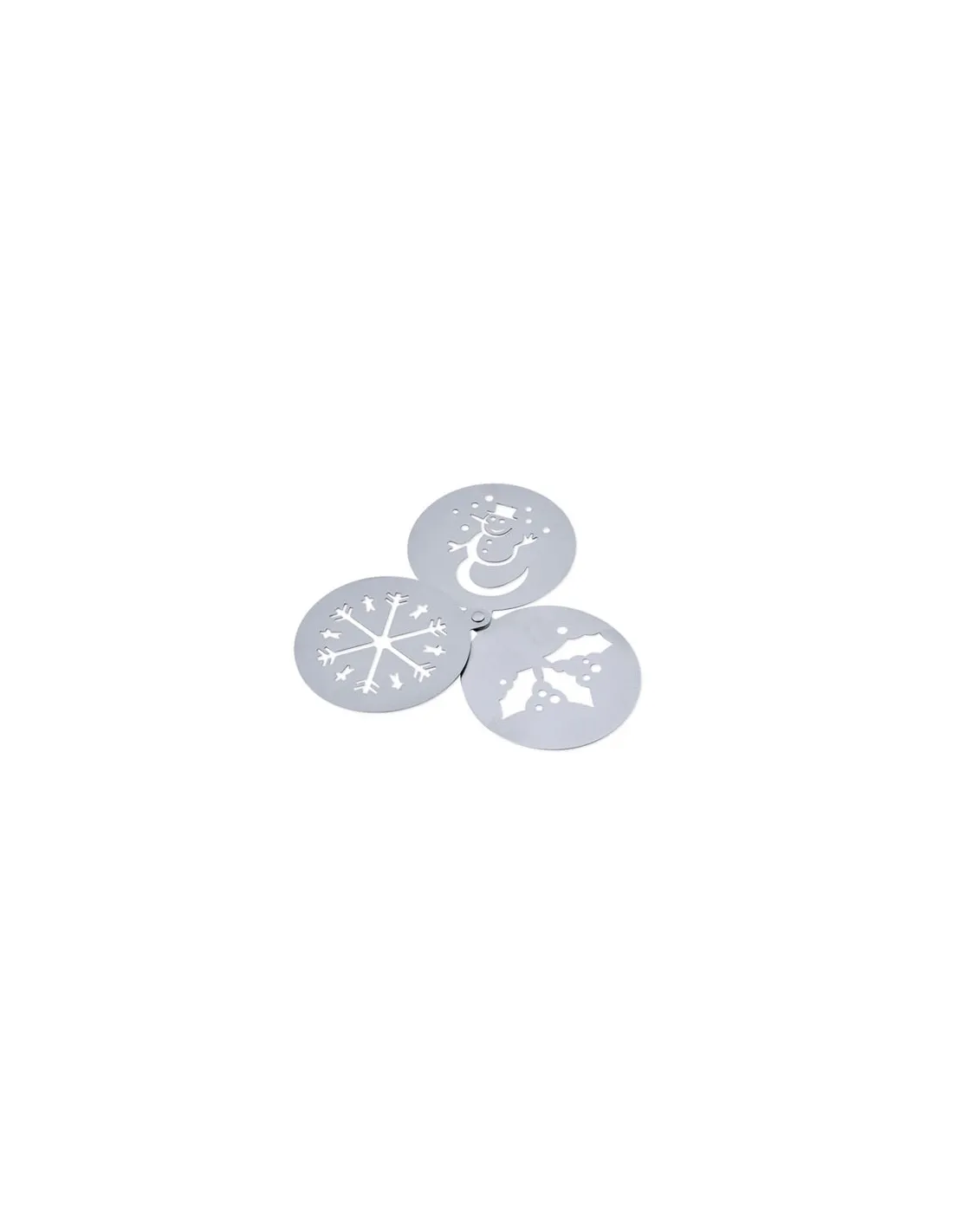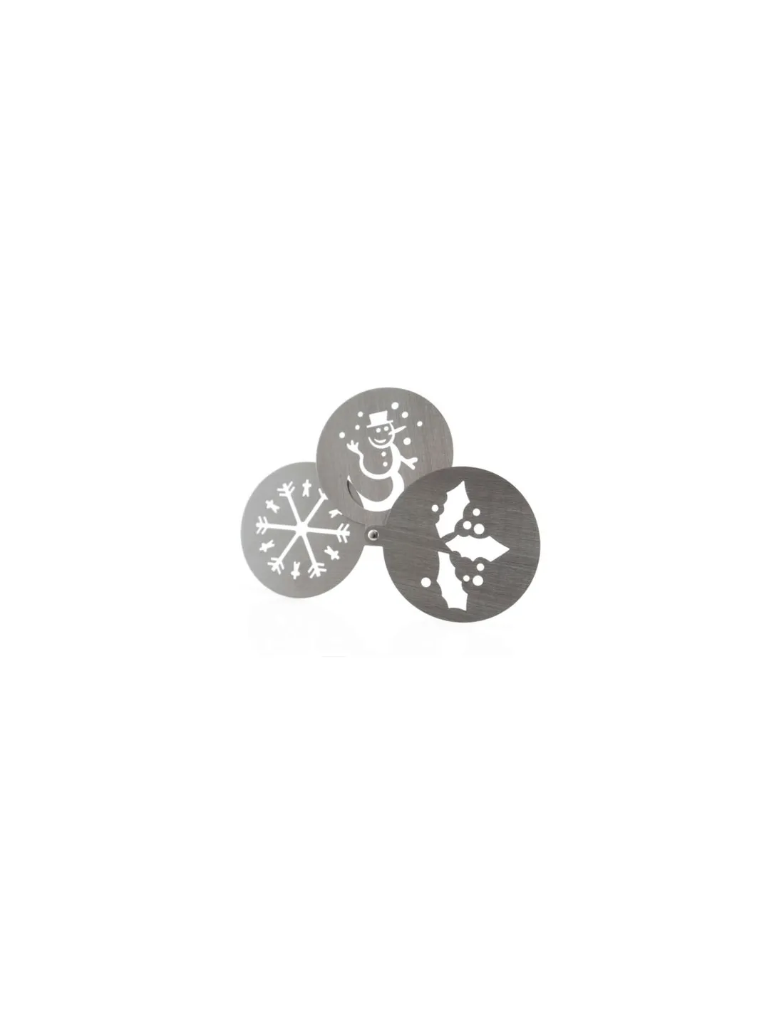 Set de 3 plantillas de Navidad en acero inoxidable. Para decorar los cristales con spray de nieve o hacer bonitos dibujos en la repostería navideña o en la espuma del café.