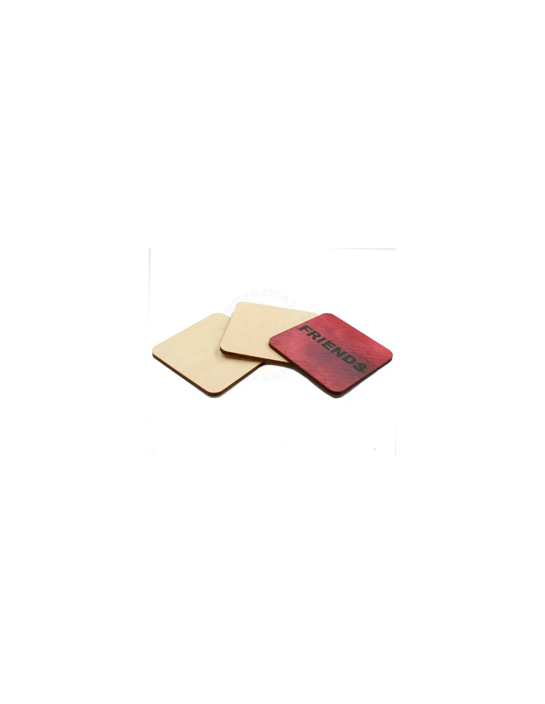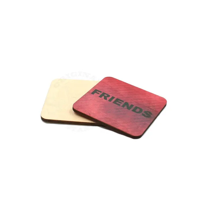 Posa vasos de madera personalizables mediante la técnica de la sublimación.