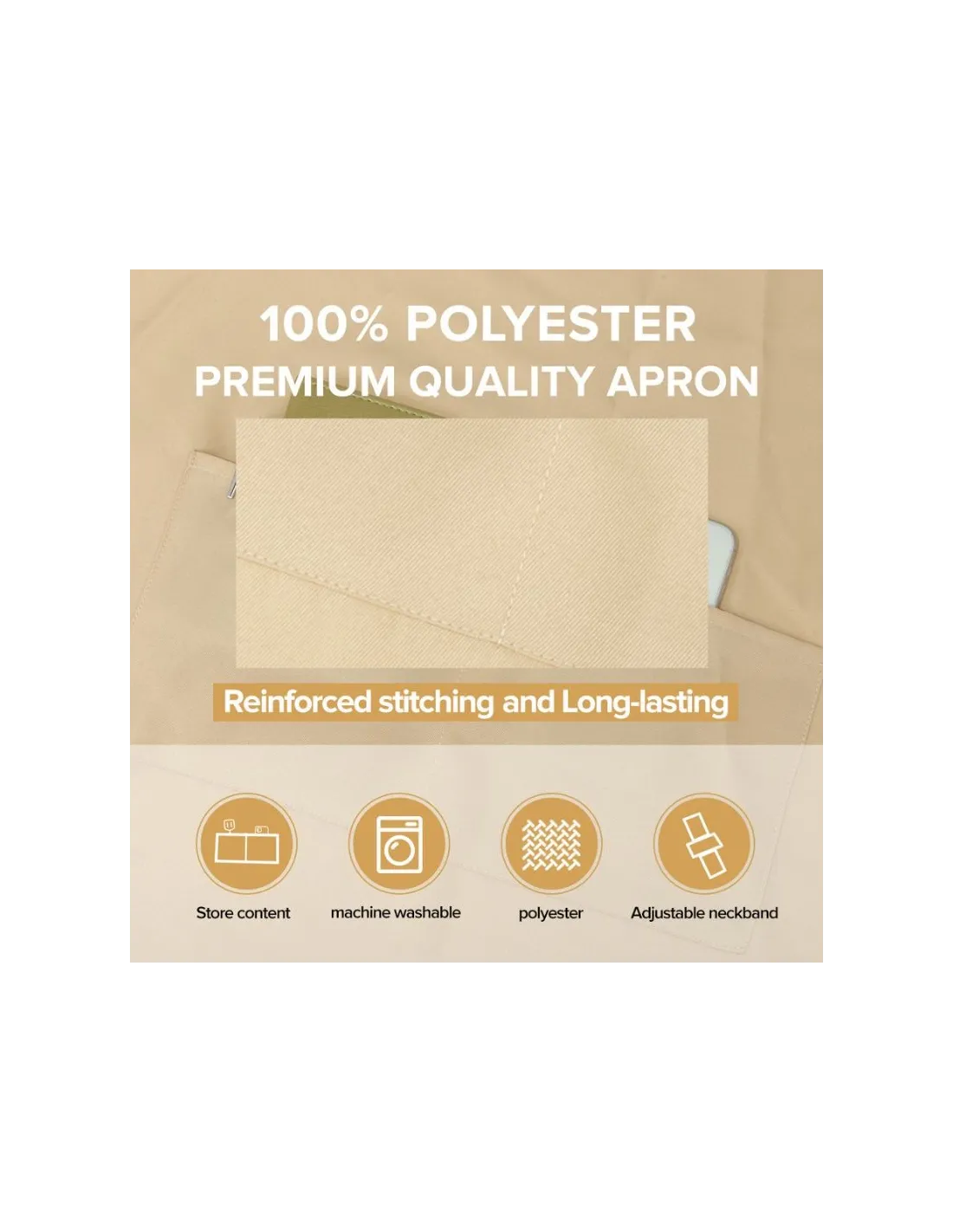 - Material de poliéster: los delantales están hechos de 100% poliéster, duraderos y lavables a máquina. No absorben las manchas como los delantales de algodón, lo que facilita mucho el lavado.