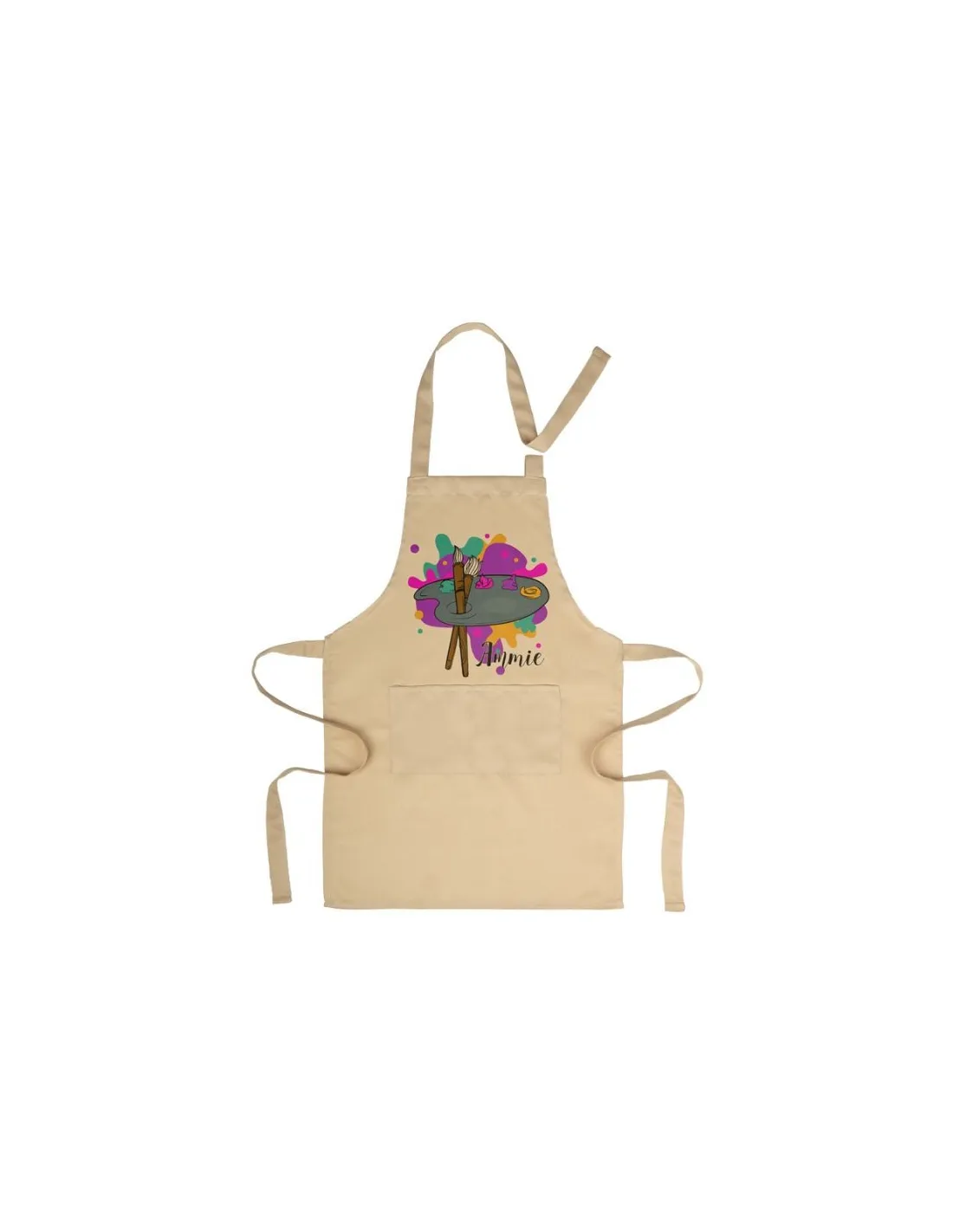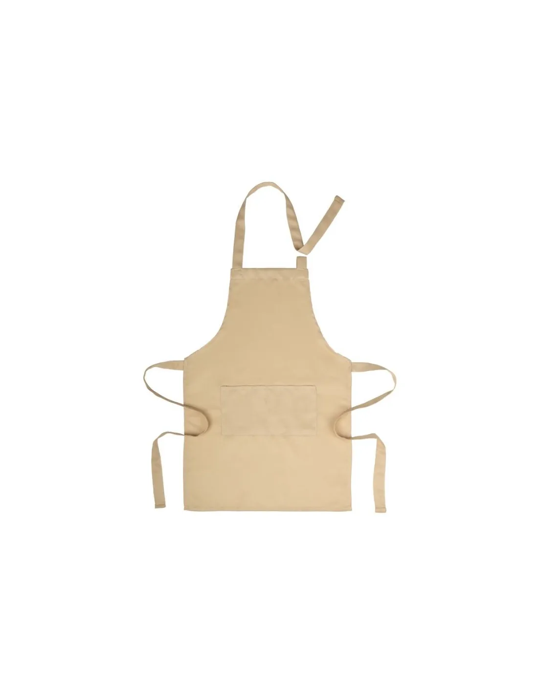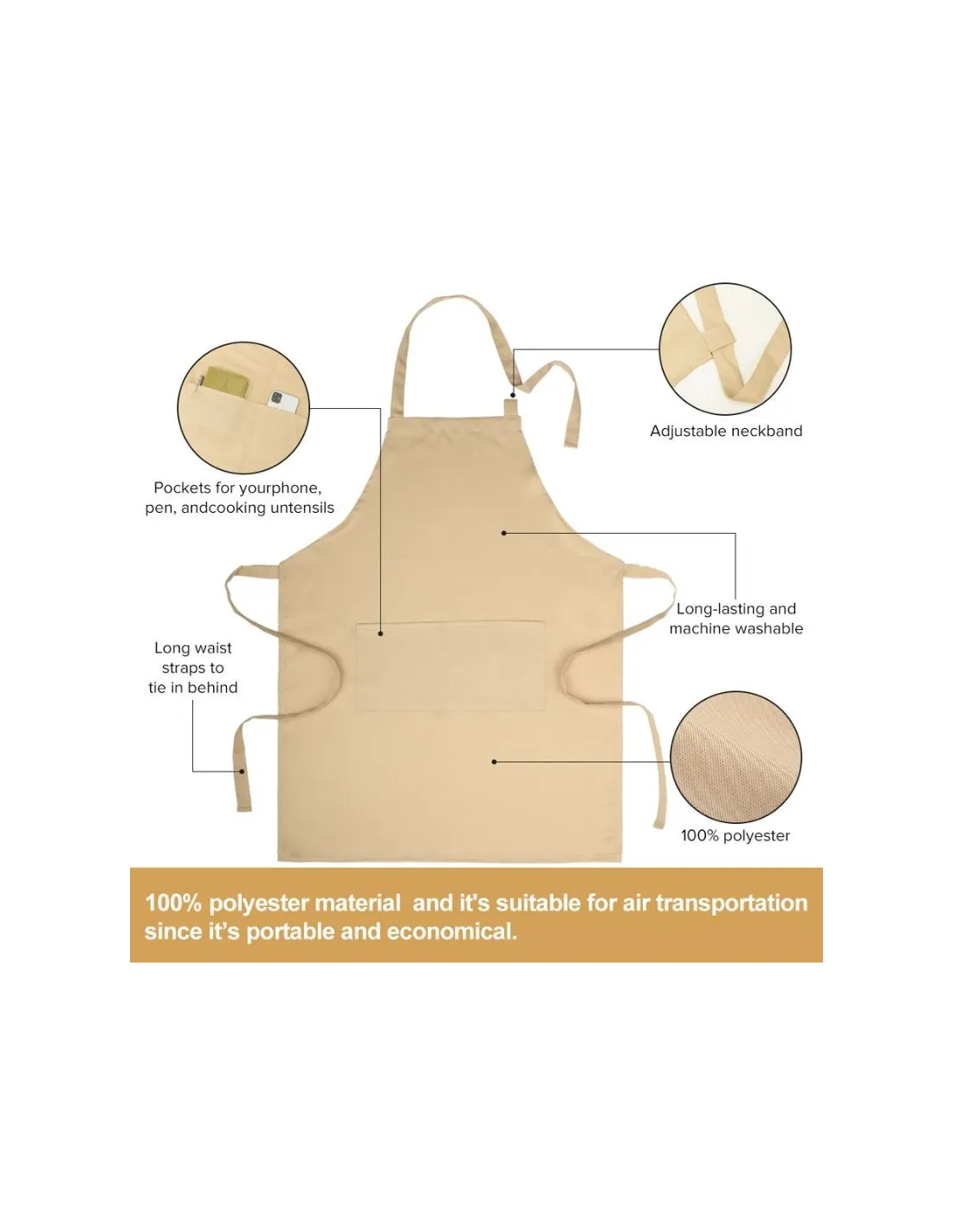 Práctico y elegante delantal de poliéster en color nature, ideal para personalizar mediante la técnica de sublimación, pero también mediante vinilo, DTF o serigrafía.