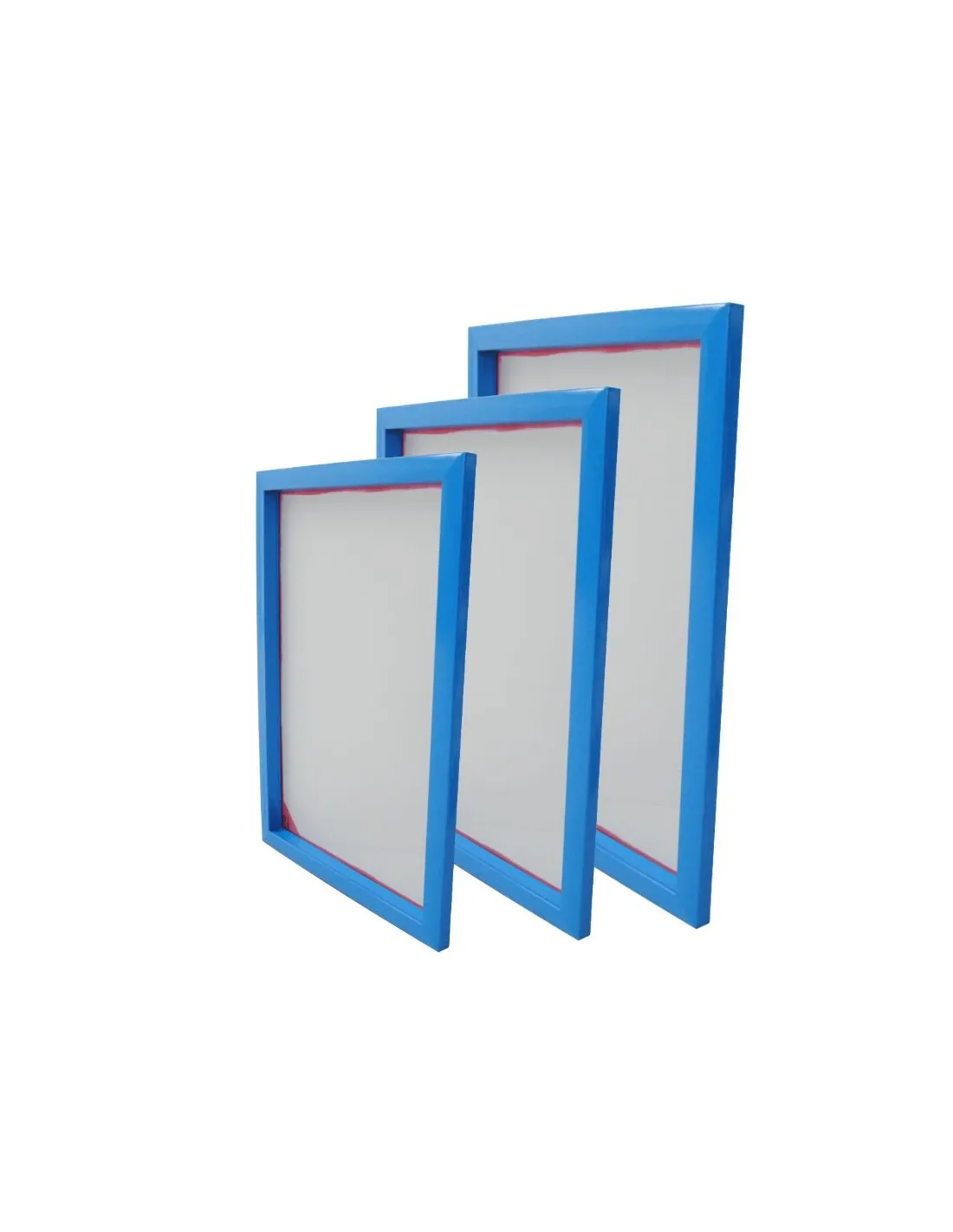 Marcos para serigrafía de hierro hueco entelados con sus respectivas mallas y medidas, comúnmente llamados pantallas de serigrafía de aluminio.