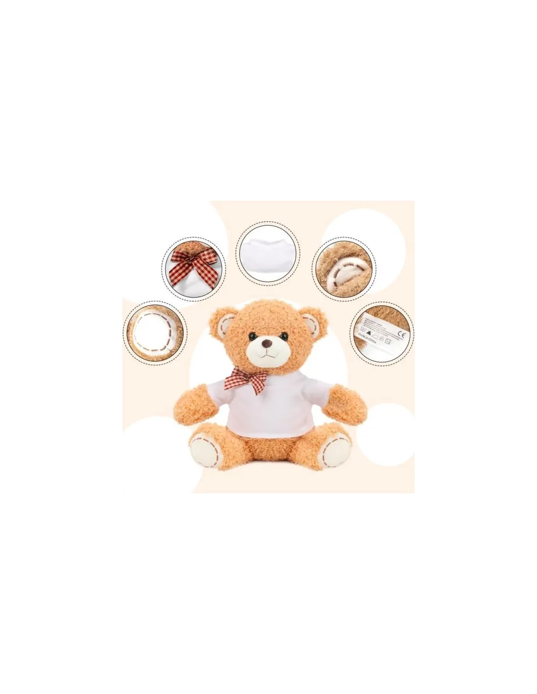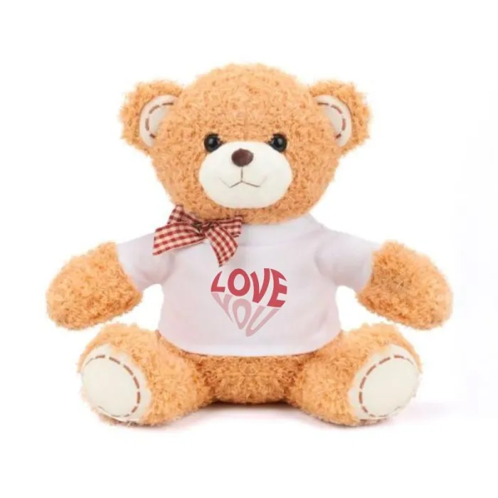 El Oso de peluche de 18cm es un juguete con una camiseta que se puede personalizar mediante la sublimación.