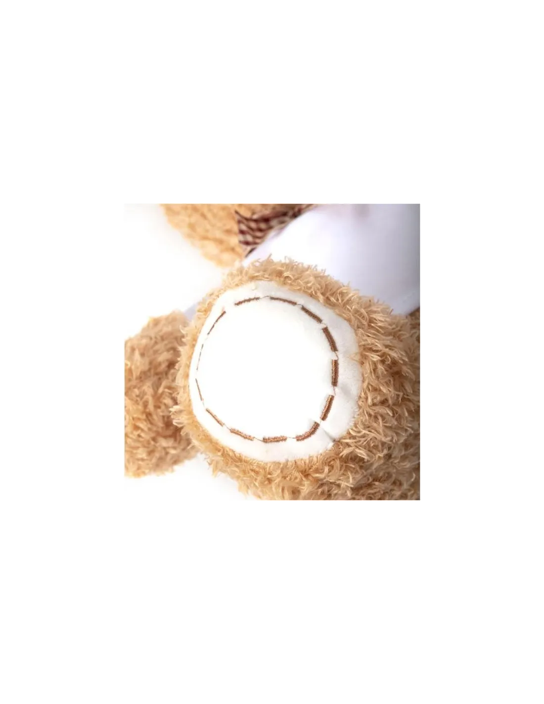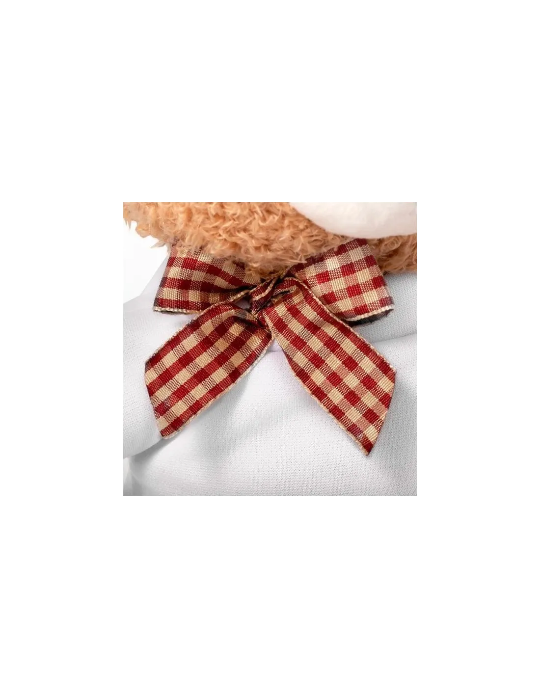 Oso de textura suave, su camiseta es de poliéster blanco, agradable al tacto.