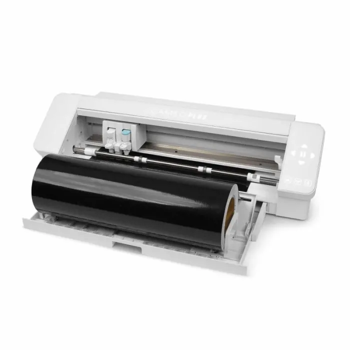 - Alimentador de rollos incorporado que le permite cargar y cortar fácilmente materiales enrollados como vinil y transferencia de calor hasta 15 pulgadas de ancho.