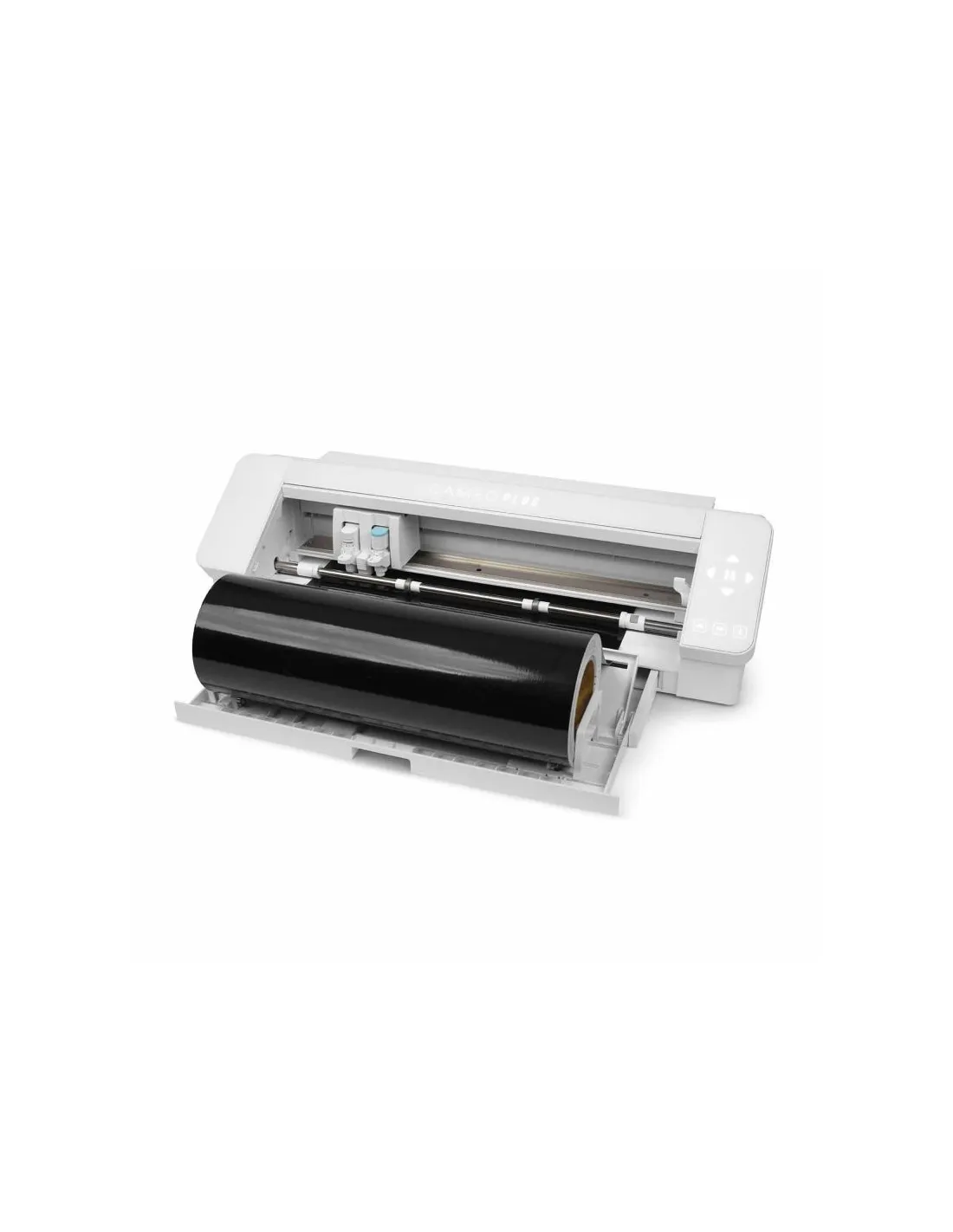 Con un alimentador de rollos incorporado y un cortador transversal, el Cameo es el cortador de vinilo definitivo hoy en día, que le permite cortar directamente de un rollo.