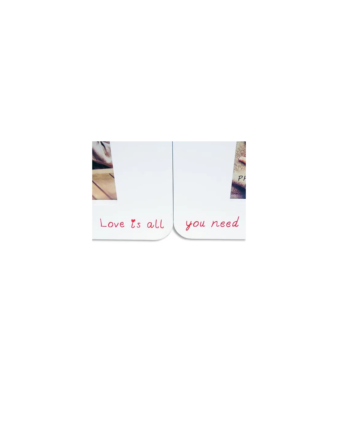 Os dois porta-retratos são unidos por ímãs para formar um coração completo.
