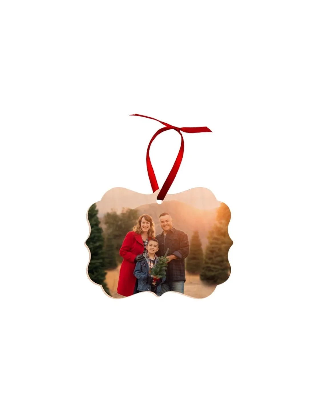 Ornamento em madeira natural modelo Benelux, peça perfeita para capturar o ambiente acolhedor do Natal com uma imagem ou mensagem.