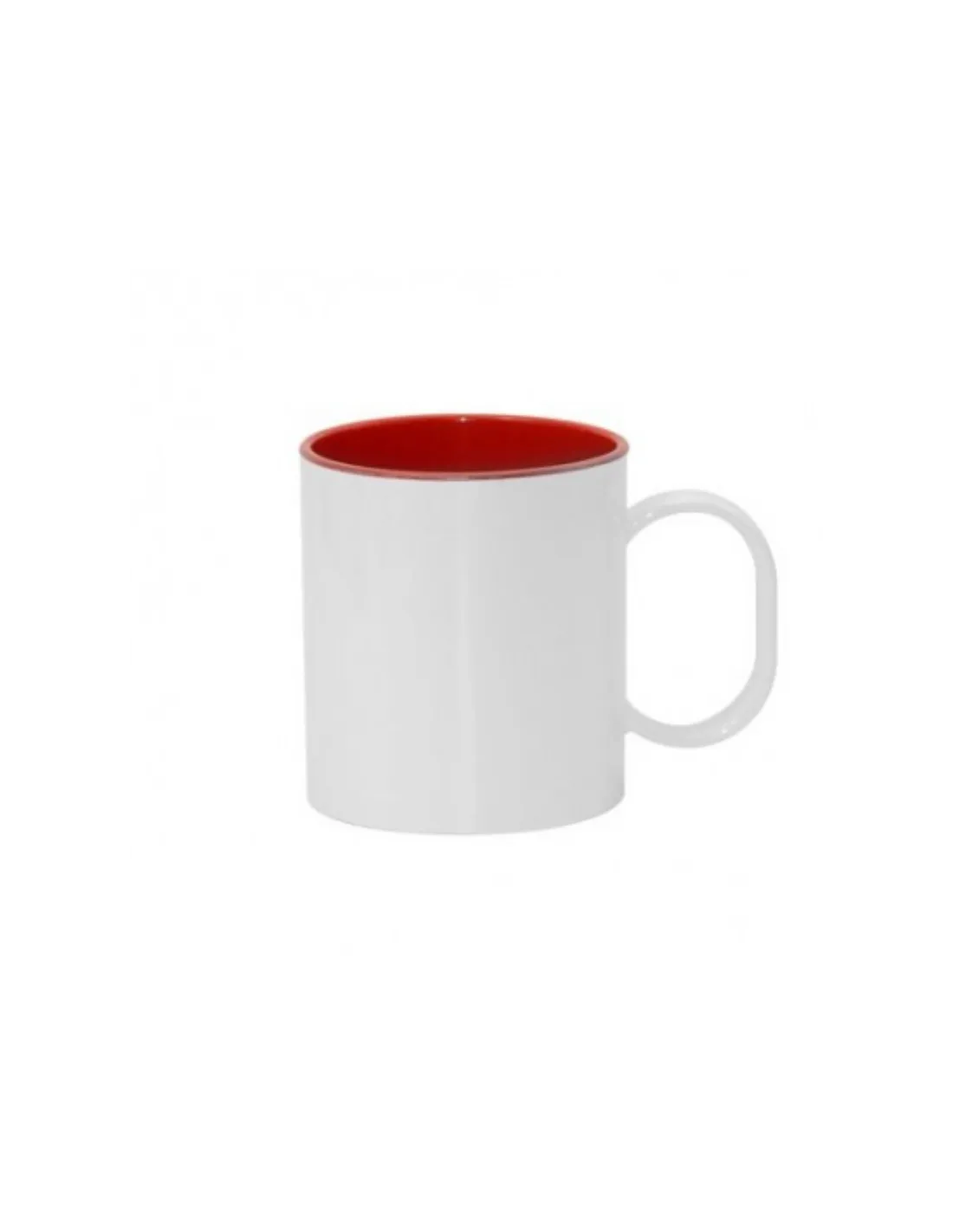 Taza de plástico interior color rojo personalizable con la técnica de la sublimación.