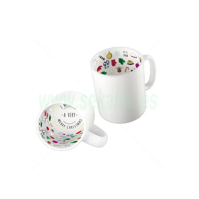 TAZA BLANCA INTERIOR SUBLIMADO NAVIDAD
