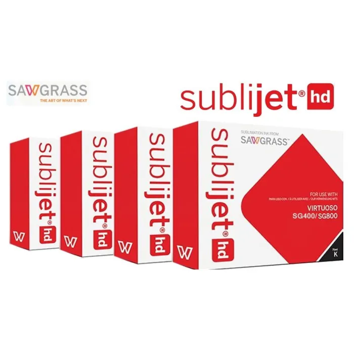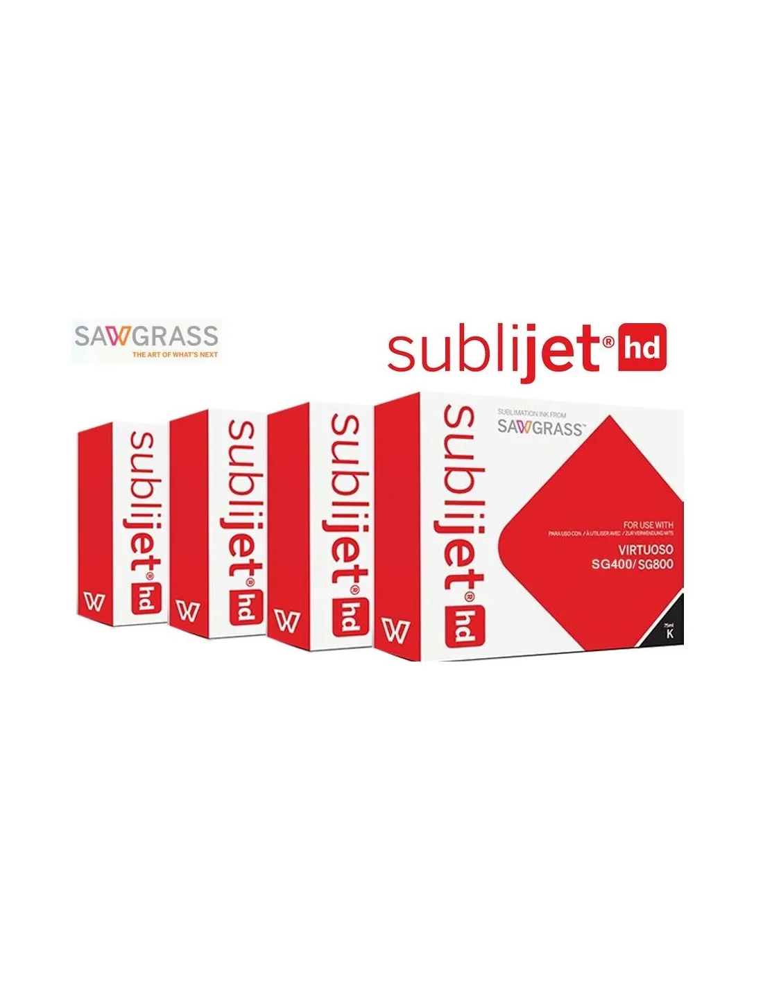 SubliJet-HD es una tinta de la sublimación de alta viscosidad de Sawgrass SG800 únicamente formuladas para la gama del sistema Virtuoso HD, estas tintas tienen un alto rendimiento con vibrantes y reales colores vibrantes menores costes.